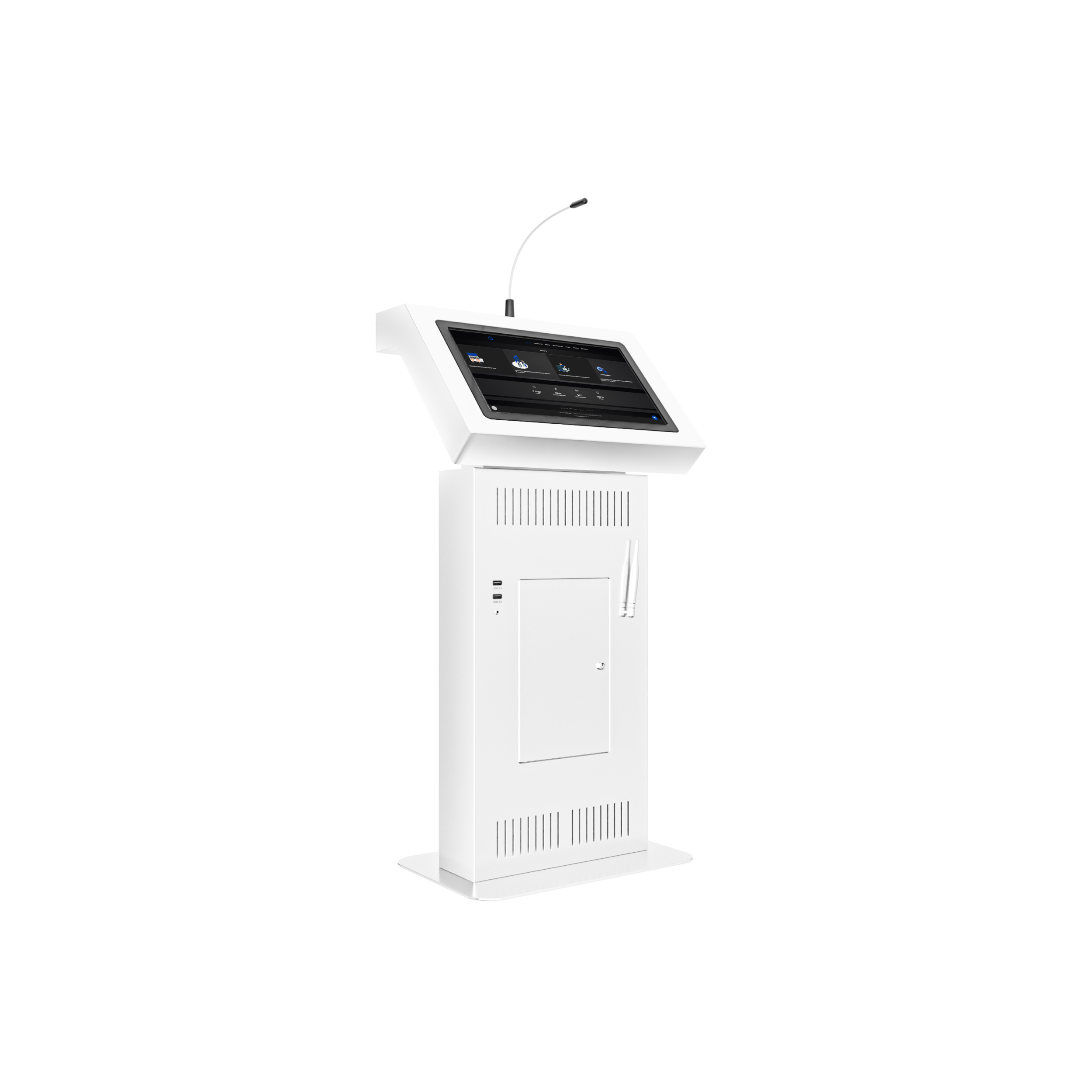 Современный, минималистичный и стильный дизайн позволит трибуне вписаться в любой интерьер, а ее мультимедийные возможности обеспечиваются дисплеем с технологией мультитач, микрофоном.