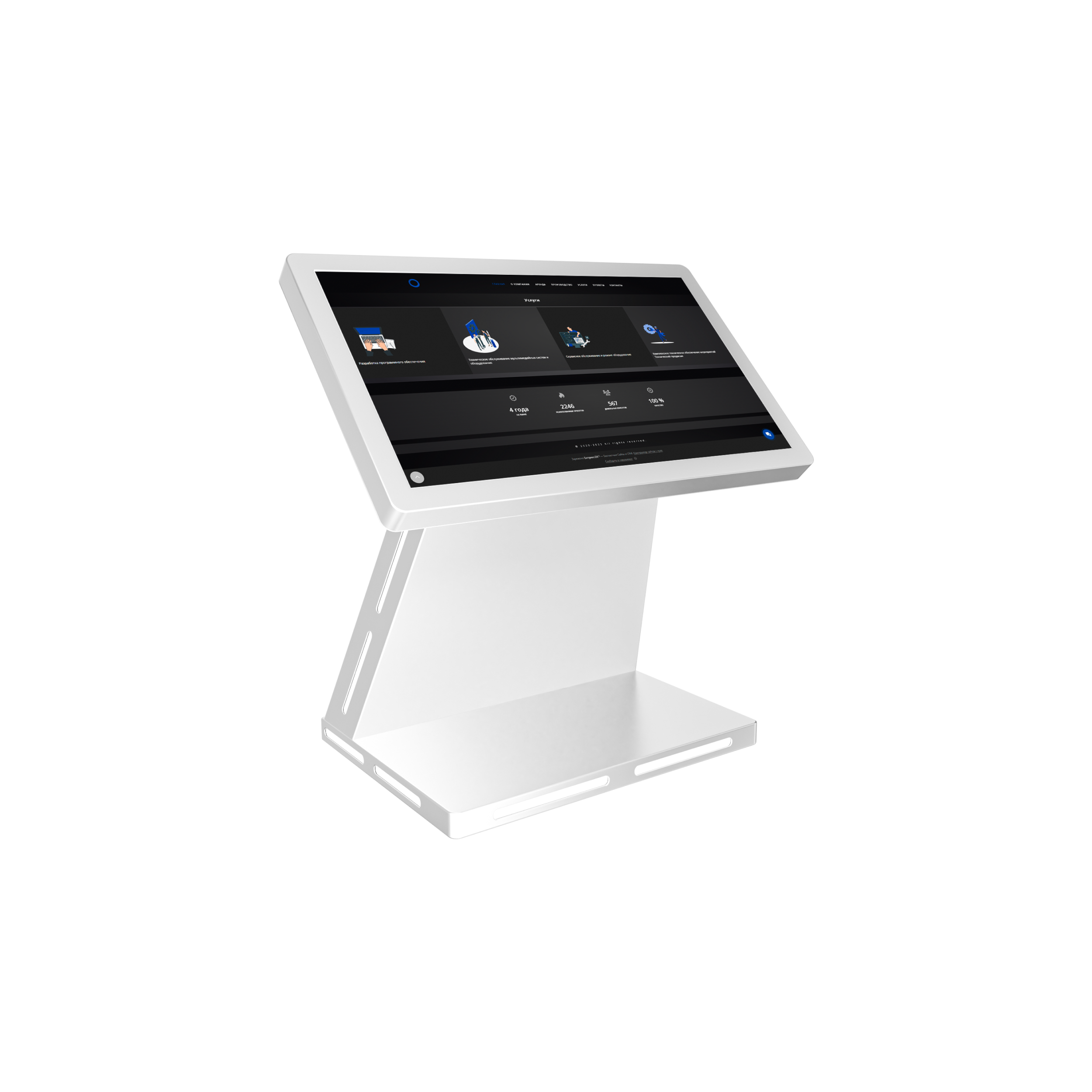 Сенсорный интерактивный стол даст возможность полноценно и красочно отразить всю информациюо вашей компании перед пользователем. Клиент, с помощью всего лишь нескольких касаний, легко найдет ответ на интересующий вопрос, ознакомится с полезной информацией, справится с оформлением документов и т.д.
